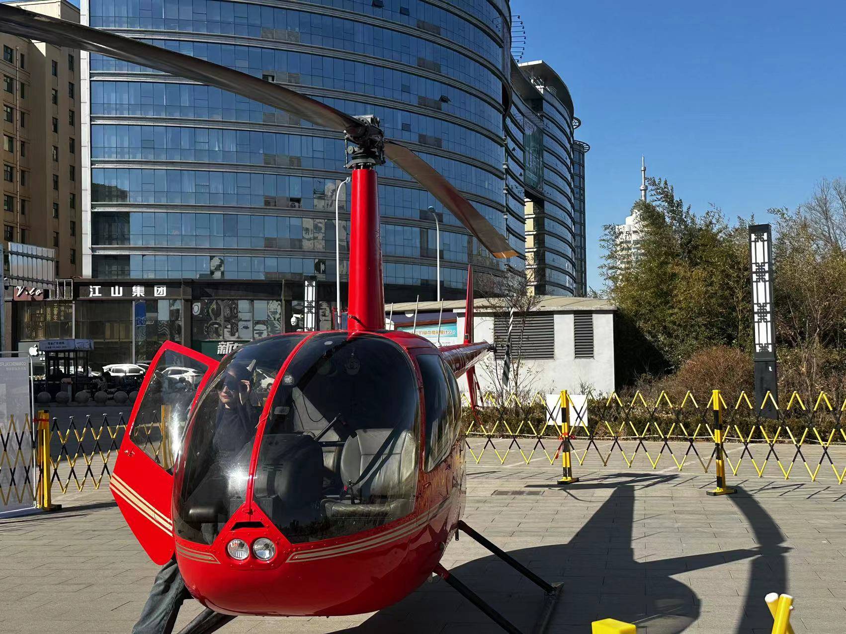 - 阳泉一架价值500多万的红色罗宾逊直升机开展静展活动
