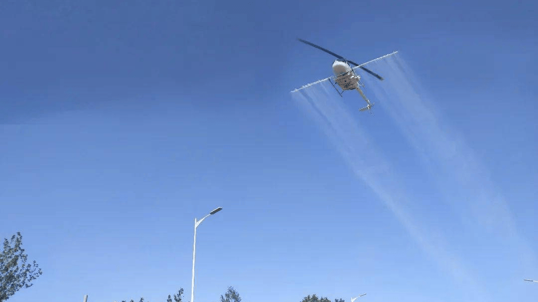 时间是春季,但并不是踏青的好时机。然而,对于飞机之家来说,这是一个重要的时刻。2024年,飞机之家迎来了首次直升机农林喷洒任务。这次任务是在济南市本地进行的。飞行员驾驶着直升机在空中来回穿梭,喷出水雾的宽度像是一道透明的屏风隔断遮挡住人们眼前一小块视野。直升机所到之处疾风强劲,树头轻轻低下如一阵阵的波浪绵延起伏美不胜收。