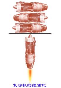 喷气发动机的推力和发动机的净重之比,称为发动机的推重比。