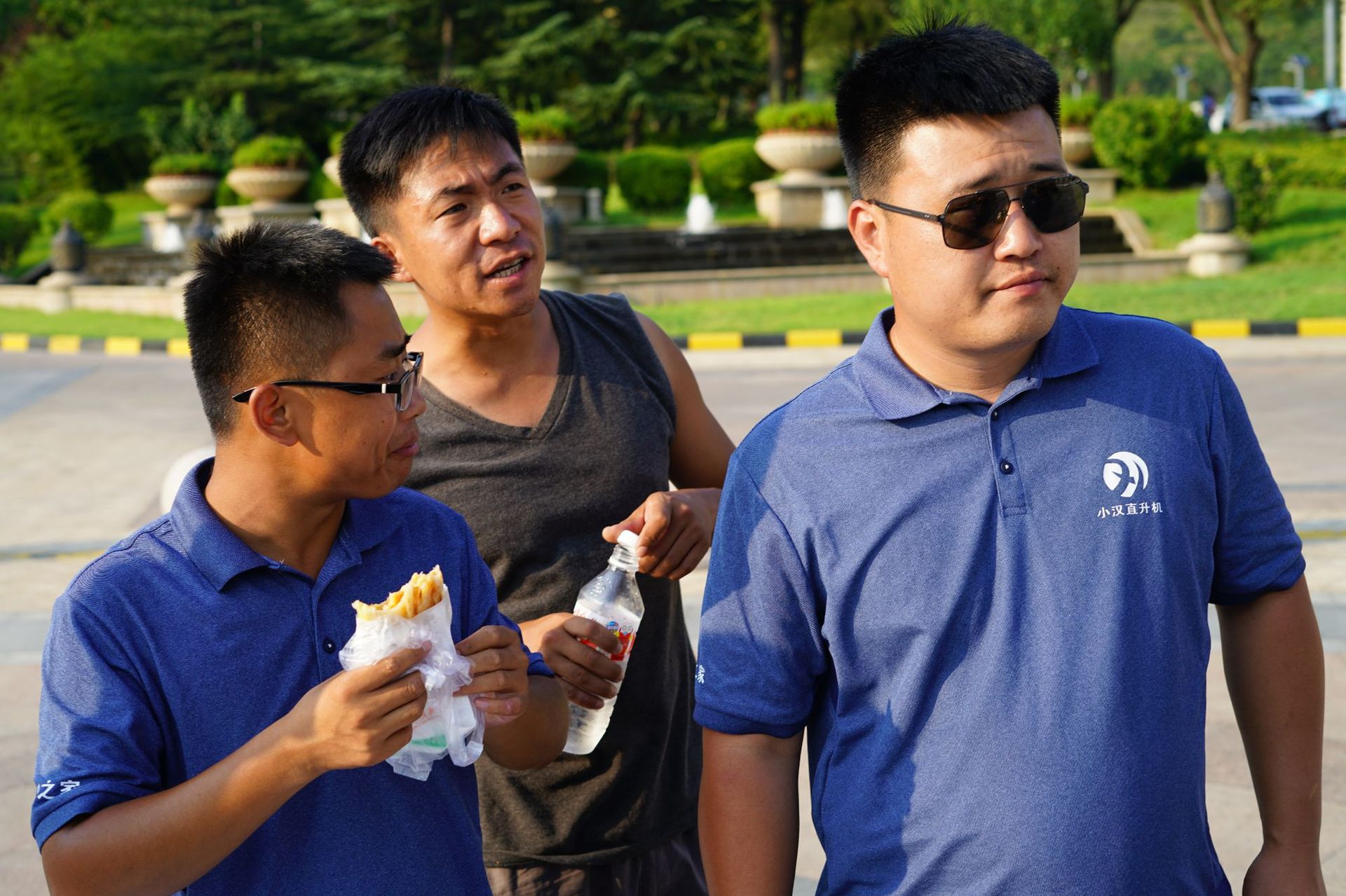 上午飞完恒大后,接近下午4点钟飞机之家一线工作人员顶着酷暑,炎炎的烈日下,早已经湿透的衣服,颜面上夹带着汗水,饥渴早就不止一次发出叫喊。5点后,结束上一场活动,准备着手吃饭,稍许的休息时间也是和吃饭同时进行了。冰镇矿泉,煎饼果子此时就是最美的享受。