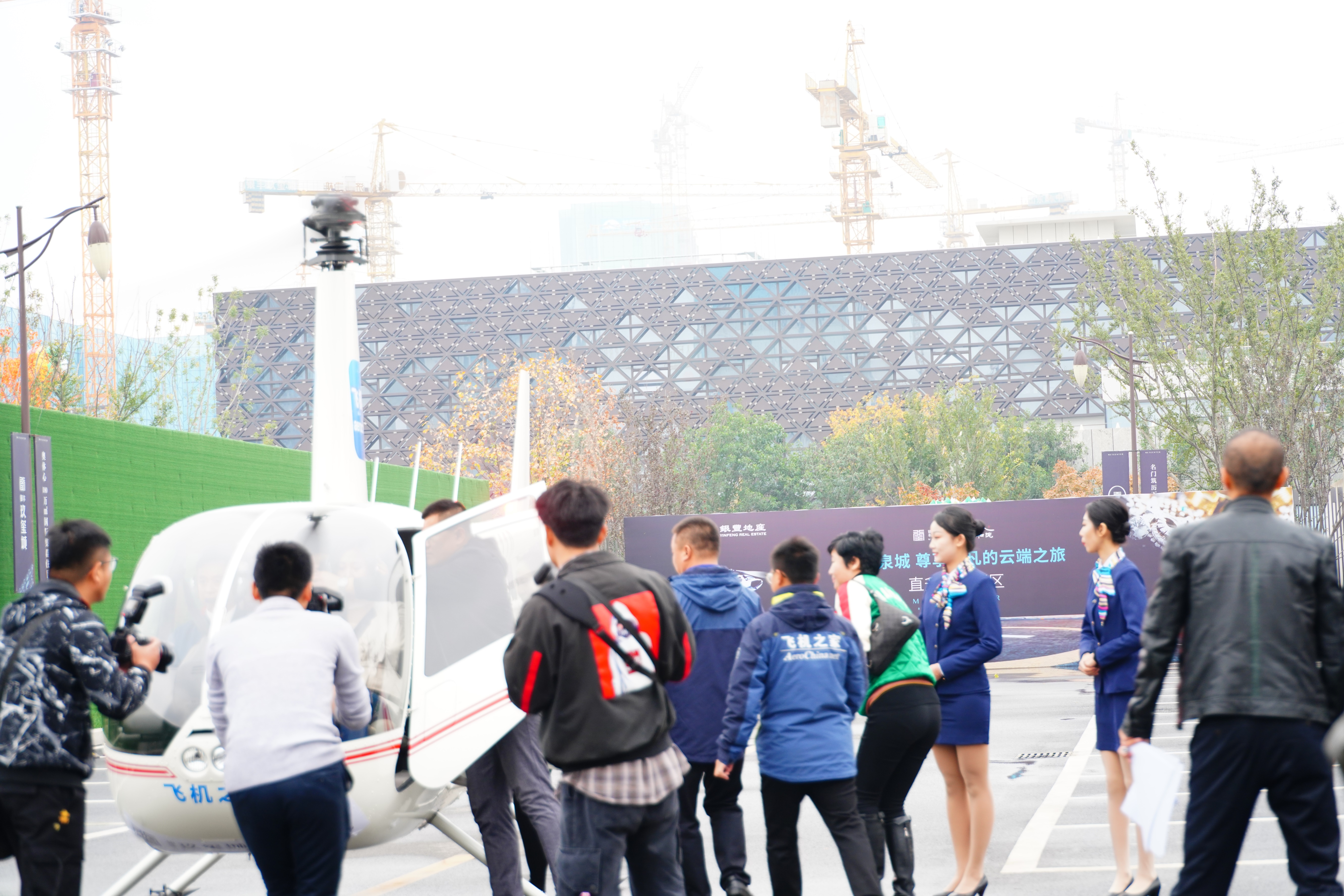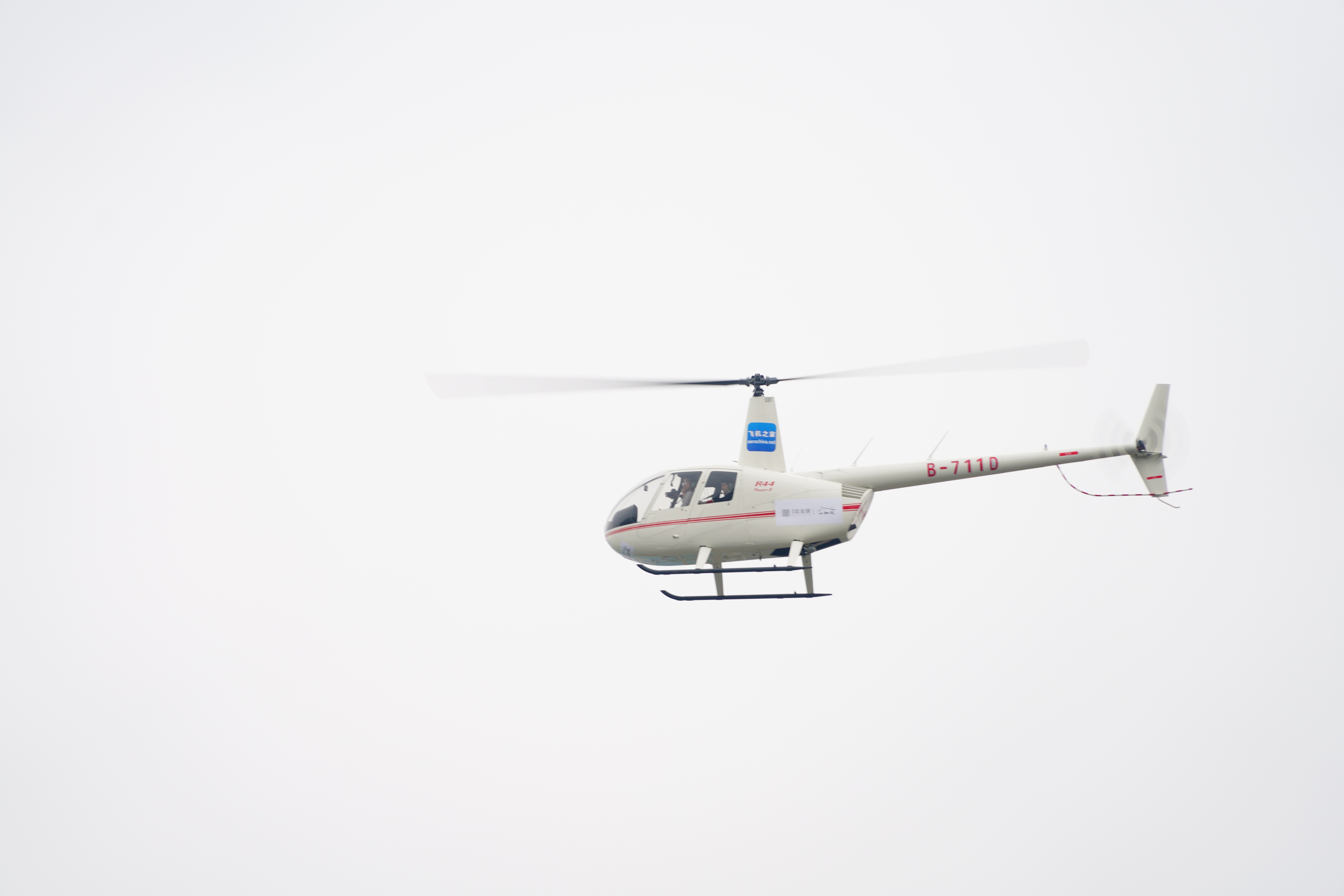2019年11月天气灰蒙蒙一片,银丰地产玖玺城山和院楼盘开业,飞机之家提前一天将一架直升机罗宾逊R44运到场地。地产公司特意划出一块区域专门为直升机起飞和降落而用。