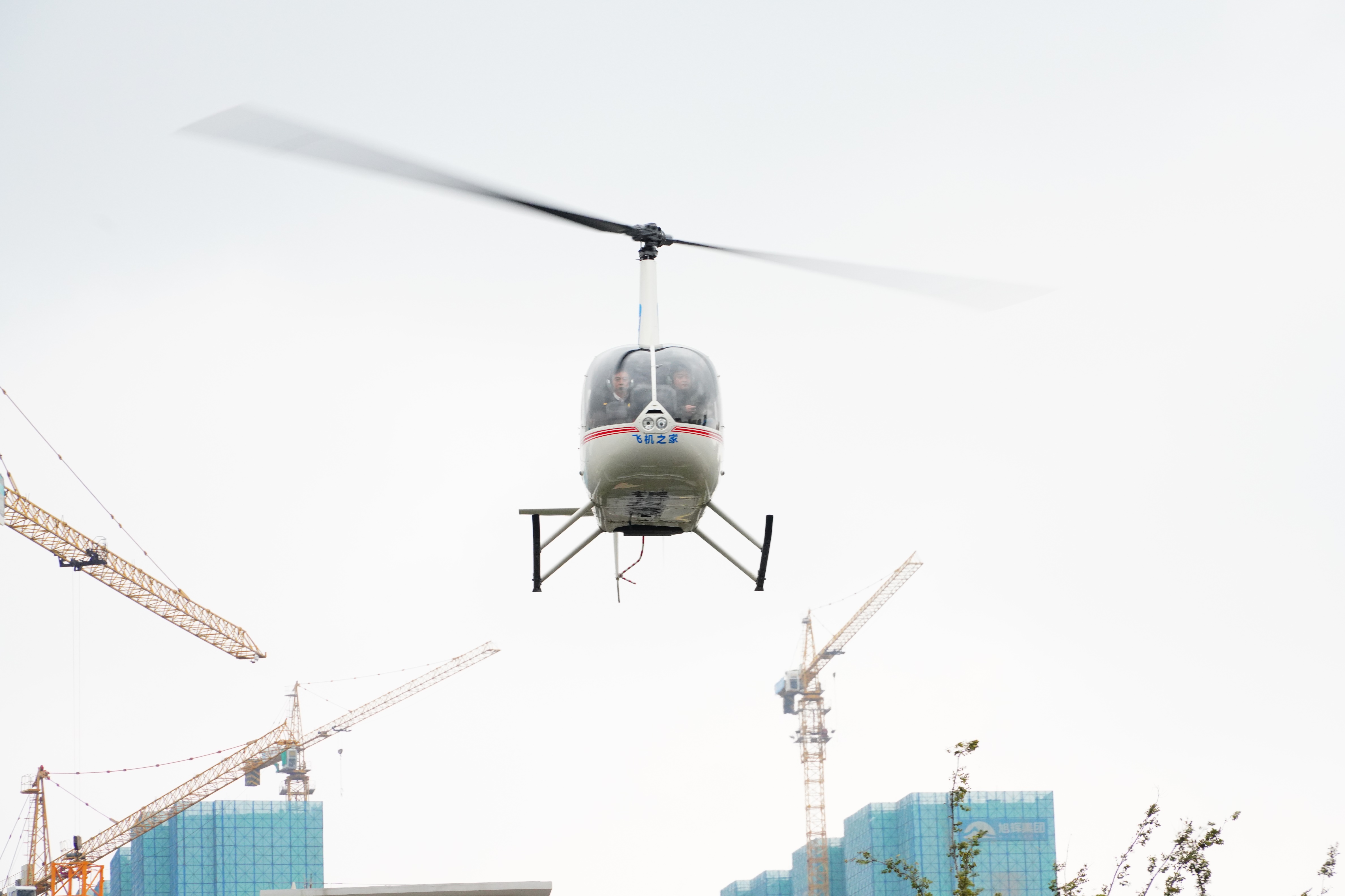 罗宾逊R44空中飞行,沿着指定的路线来回穿梭在每座楼盘之间。直升机发出轰隆的声响,可谓未见飞机,先闻其声。签飞协议处,客户期待的眼神,望见空中的直升机,便起身手指,口中念道飞机来了。只是这飞机所到之处,带着一股卷风,地面上的小物品都被吹的四下散开,乘坐飞机的客人却大声喊到这一轮是否轮到我们。空中看房已然成了潮流,消费者也乐意尝试新鲜的事情。