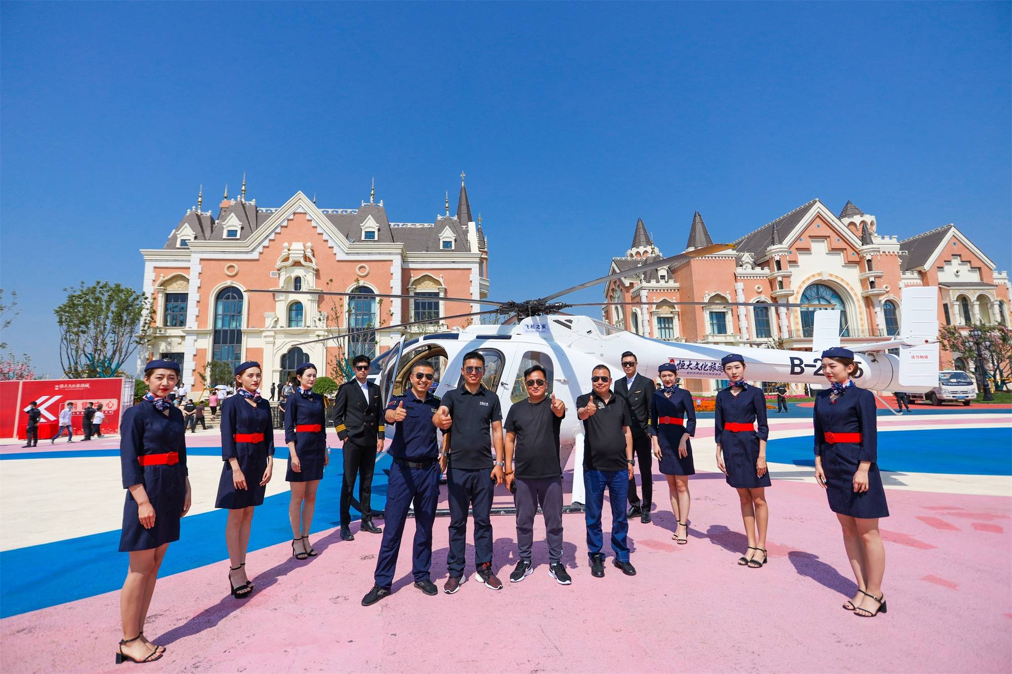 提前一天协调完空域,这架麦道600N的直升机一早便从雪野湖基地运载到沧州。楼盘前空旷的广场处,指定蓝色区域内,停放着一架直升机,许多游人驻足观看,并掏出手机拍照。届时,机务人员,六名女空模和两名男空模,站在这架直升机前合影留照。