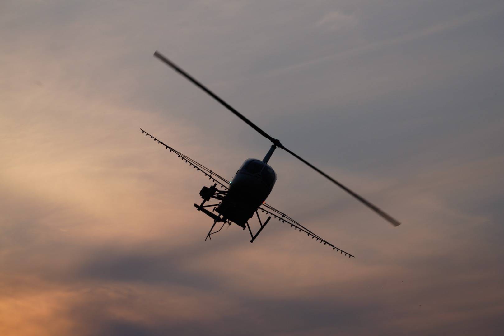 飞机之家出动直升机开展春尺蠖防治病虫害作业