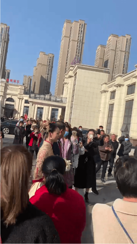 据了解,这场婚礼虽然显得稍晚,但是经过疫情考验和时间的发酵,来得如此浓烈。上午10点整,伴随着巨大的发动机轰鸣声,载着新人的直升机徐徐盘旋而落,停在婚礼喜宴广场。在亲朋好友及市民的阵阵掌声与祝福中,一位穿着婚纱的新娘缓缓打开舱门,此时一名身穿礼服的新郎快步上前,送上鲜花和拥抱。