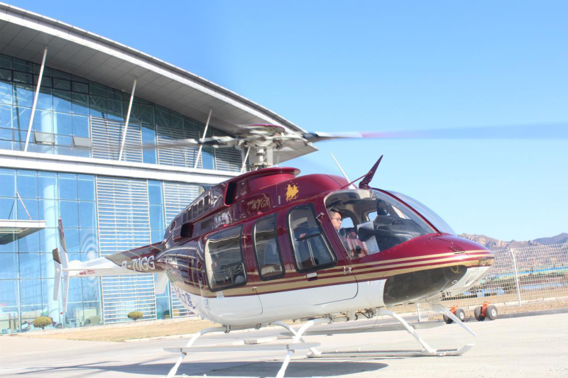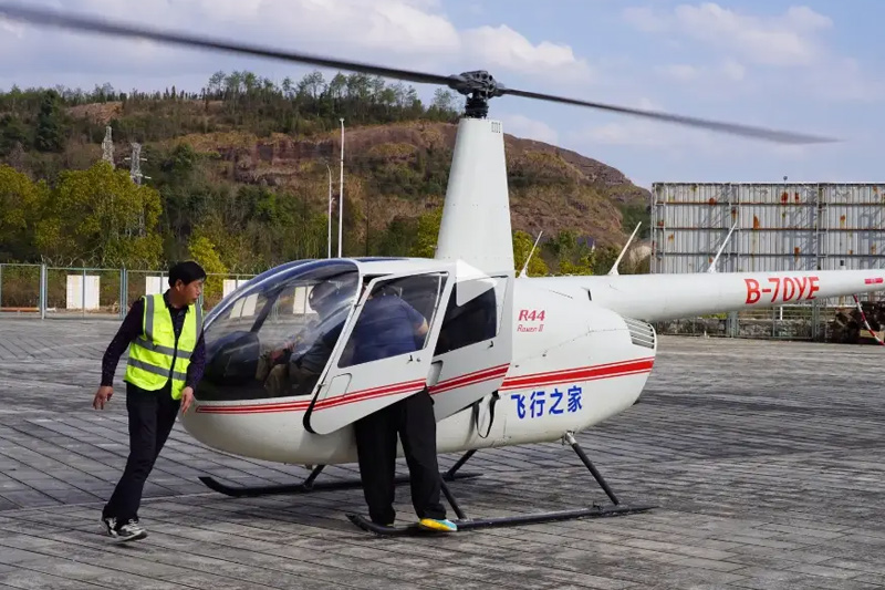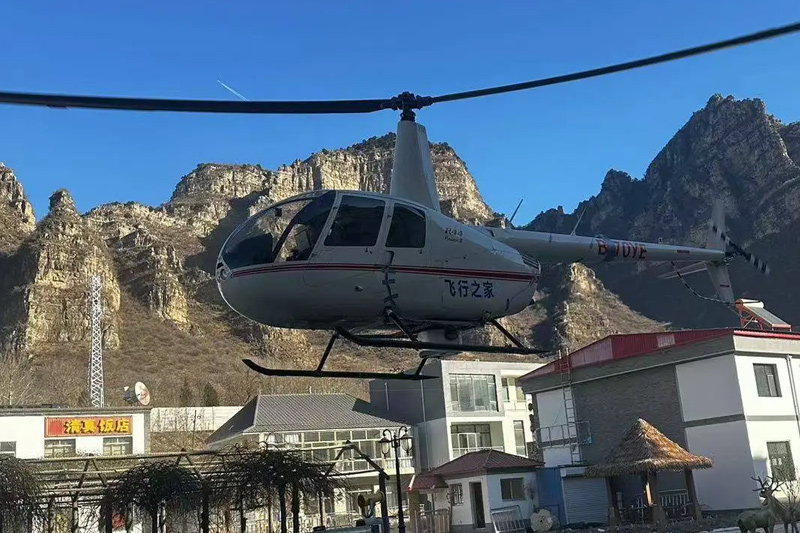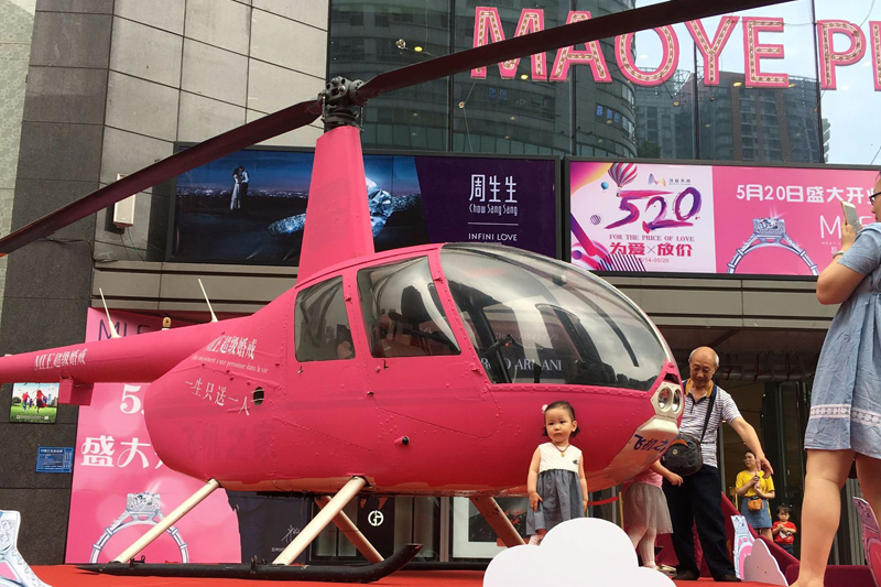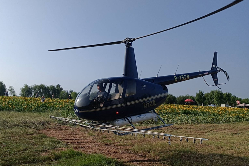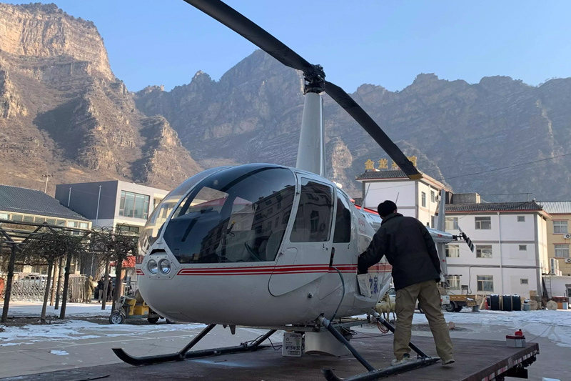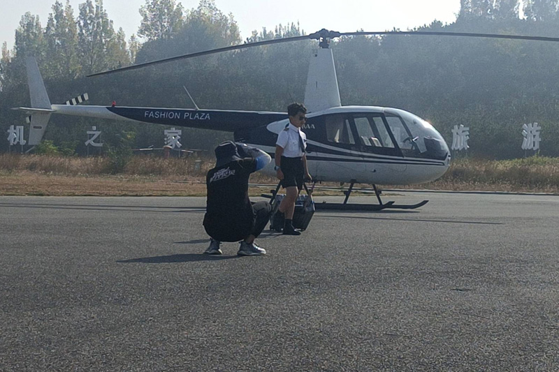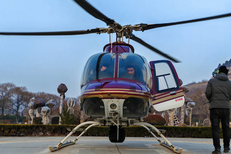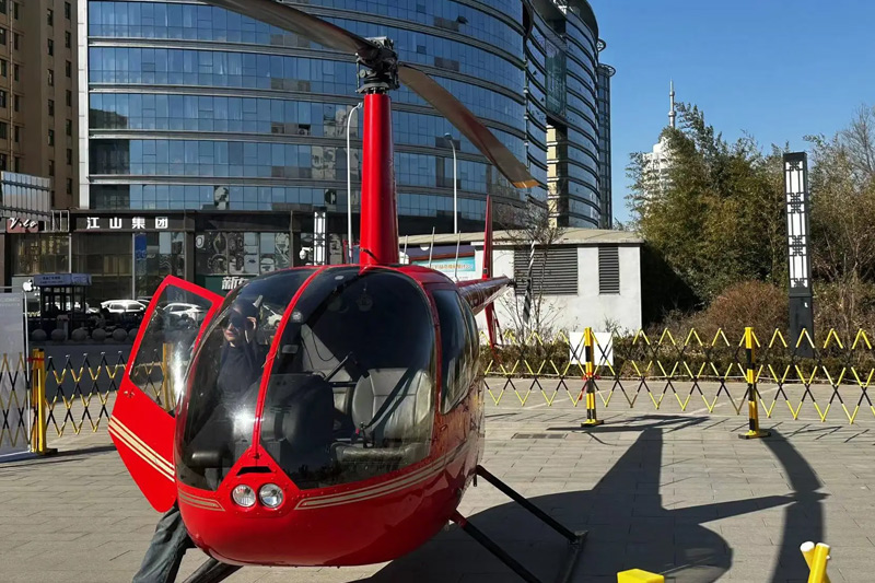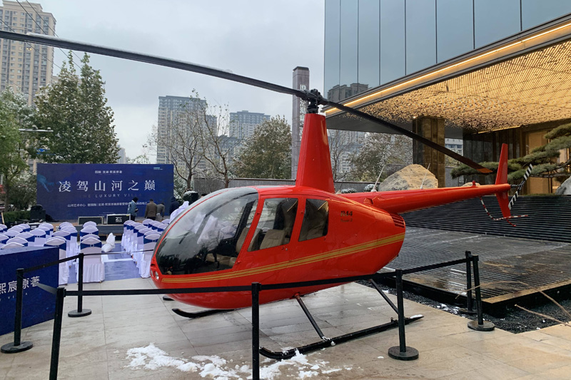 价值400万的罗宾逊直升机在泰安参加商业庆典