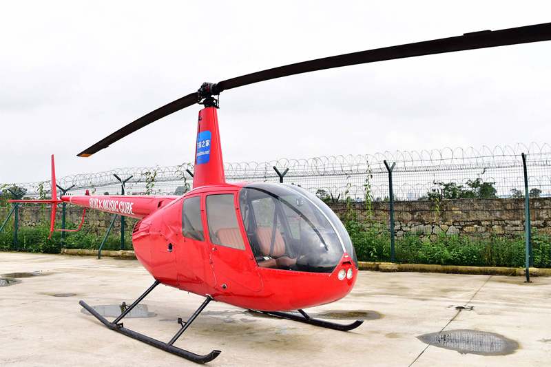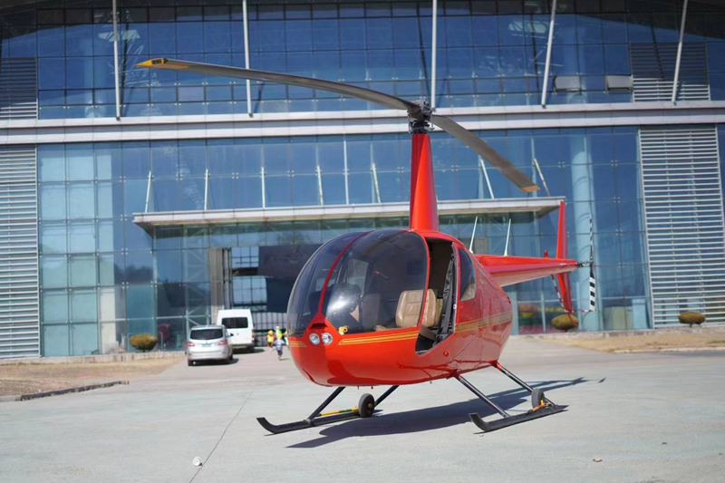 阳泉一架价值500多万的红色罗宾逊直升机开展静展活动