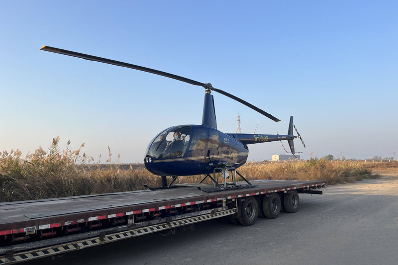 价值400万的罗宾逊直升机在东营海上进行飞行体验