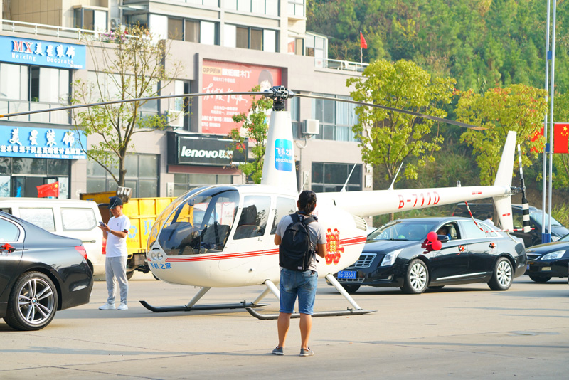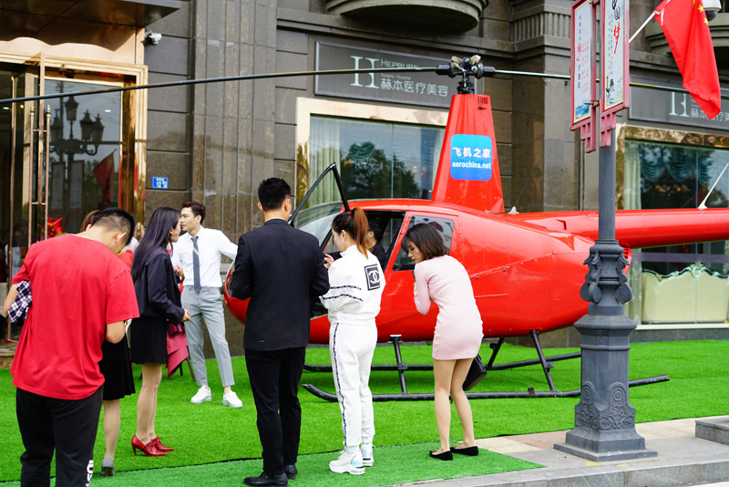 湖北武汉一女老板租直升机开业