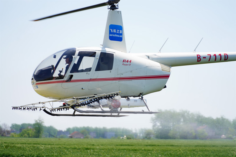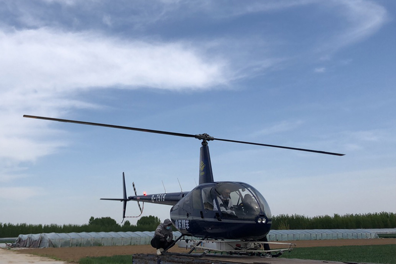 山东济南一架直升机迅速开展消灭春尺蠖行动