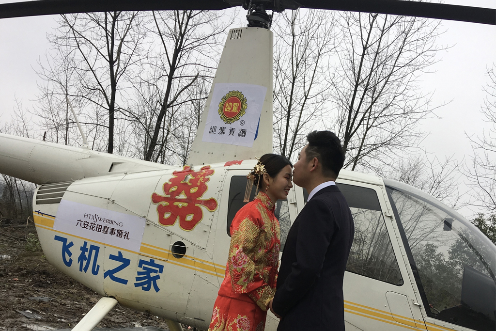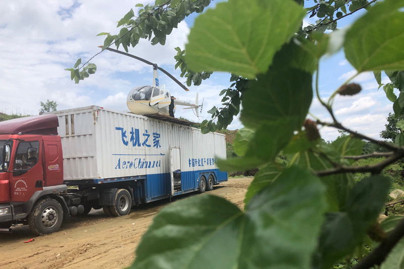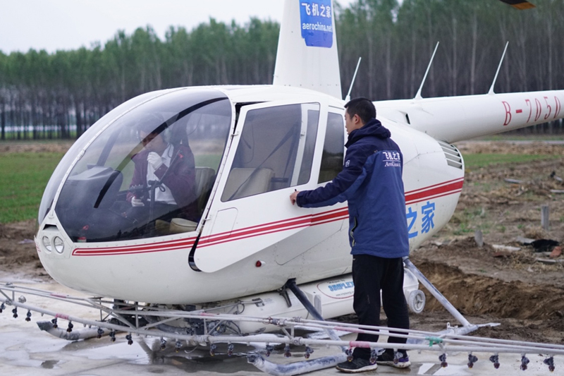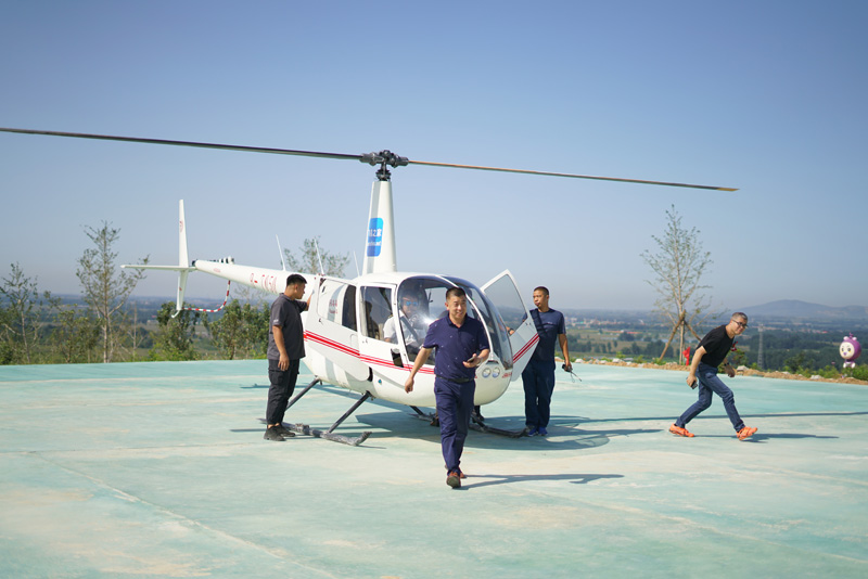 山东泰安飞行员农村创业开直升机拍600亩樱桃园